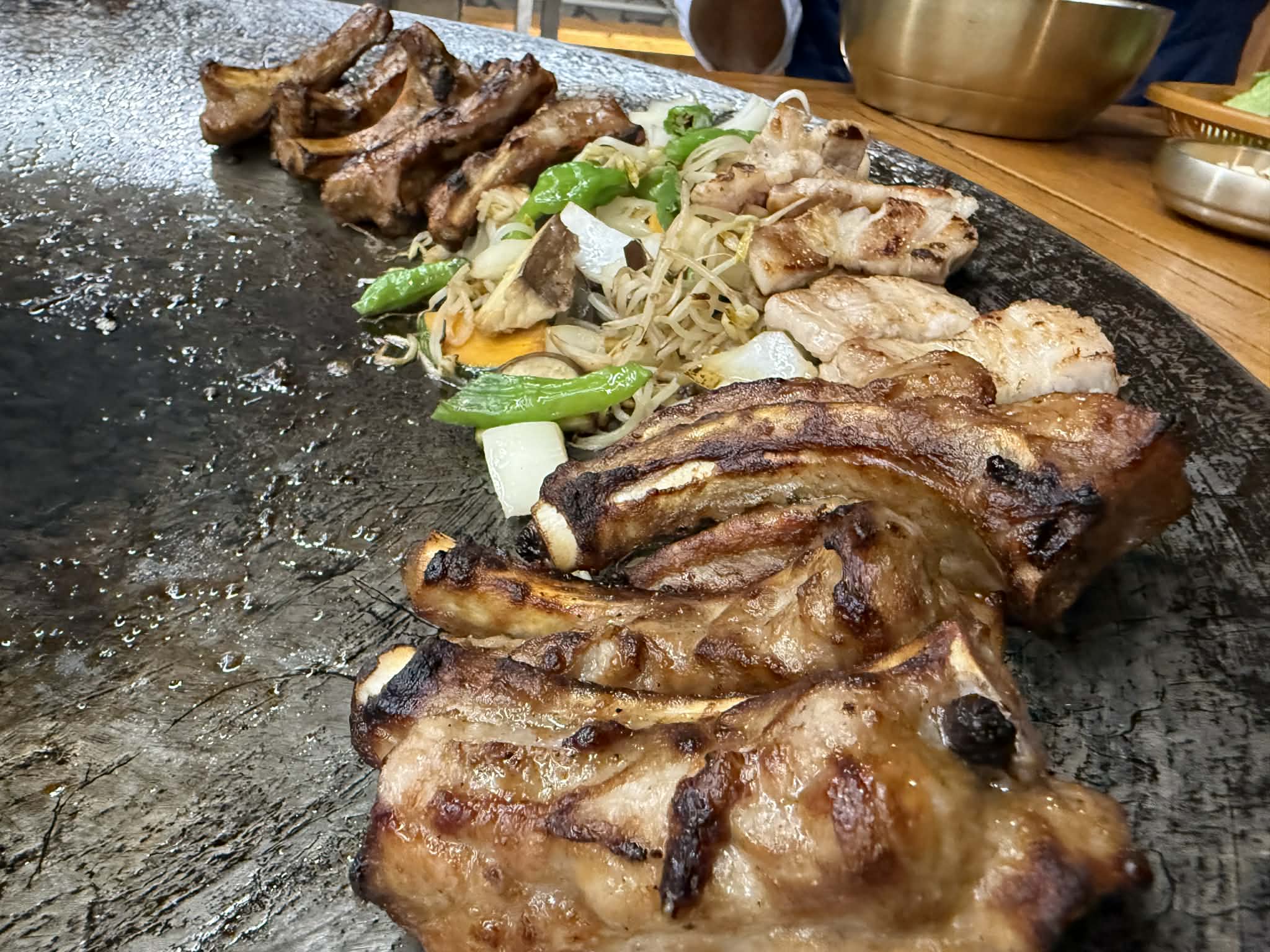 The table-side cast iron cooking setup is something I’ve never seen anywhere else in Korea.